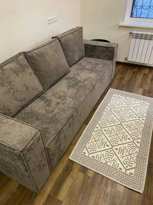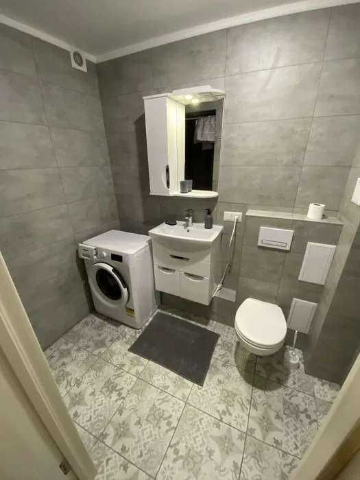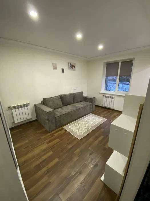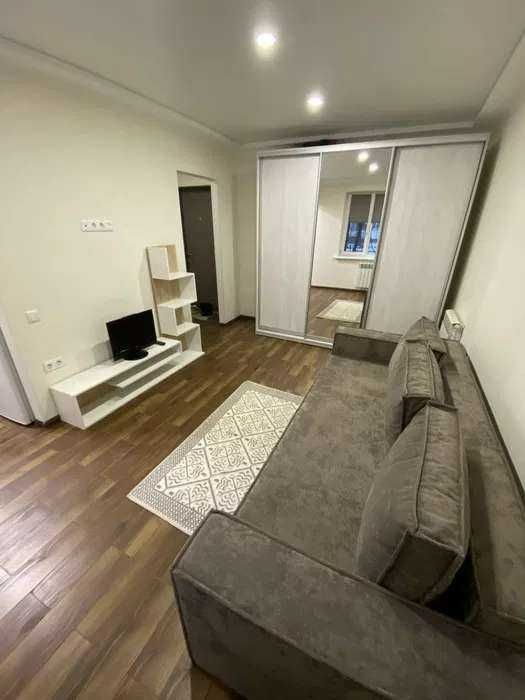 Квартира з новими меблями, технікою та сантехнікою. У кімнаті є велика містка шафа-купе з дзеркалом на повний зріст, зручний диван, журнальний столик та тумба під телевізор.