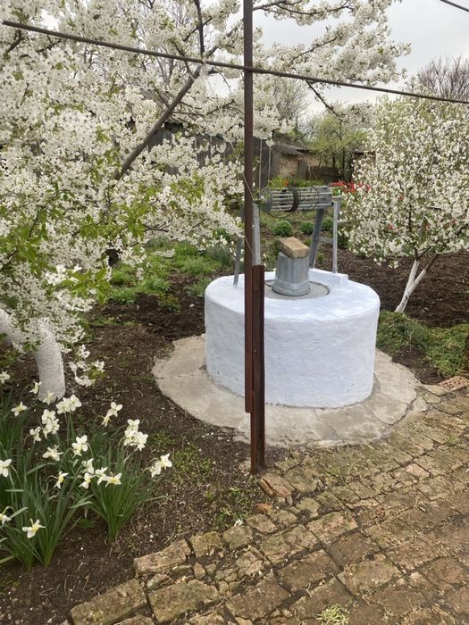 Є гараж з великою ямою, басина, погріб, сараї, дві сливні ями, новий водопровід, город 5 соток.