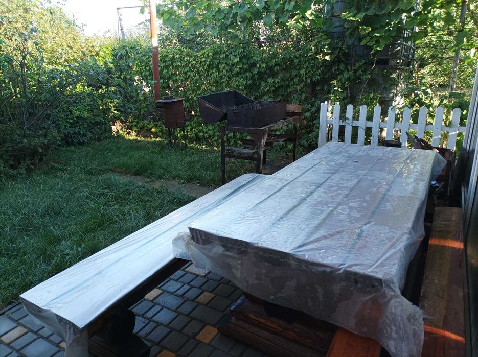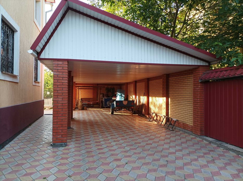 Великий закритий двір , навіс, альтанка, гойдалка, зона відпочинку (мангал, казан), сад .
