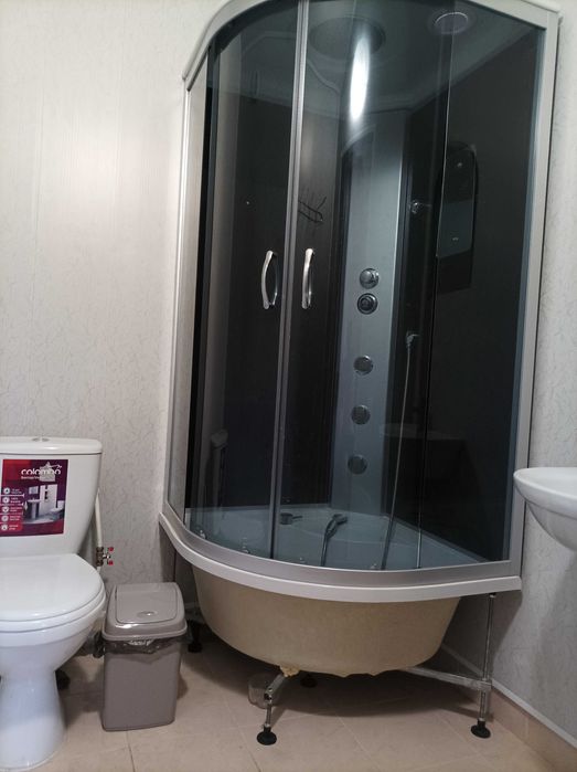 Включає в себе три спальні, кухню студію, два санвузла, передпокій. Меблі, побутова техніка, кондиціонер, інтернет.
