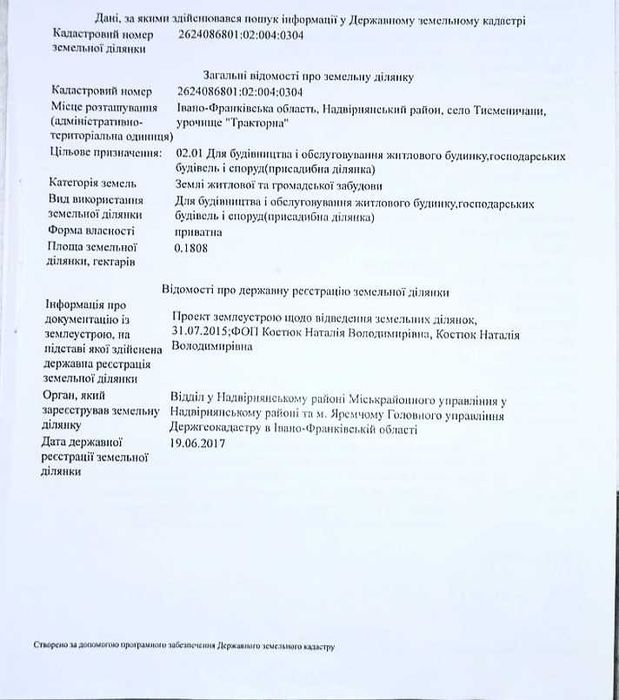 ЗЕМЕЛЬНА ДІЛЯНКА 546,28 $ за сотку - 18.08 сотих, 15 км від Івано-Франківська; Продається земельна ділянка площею 18.08 сотих (0.1808 гектарів).