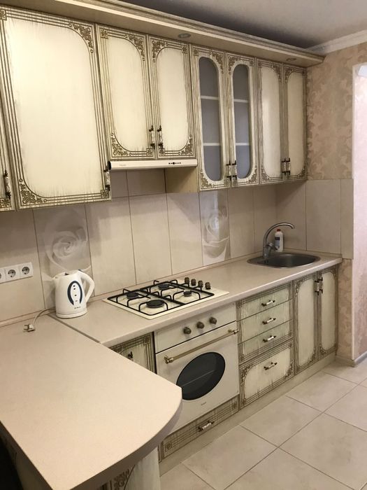 Квартира укомплектована всіма меблями та технікою. Газова плита.