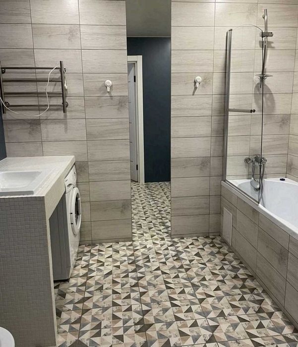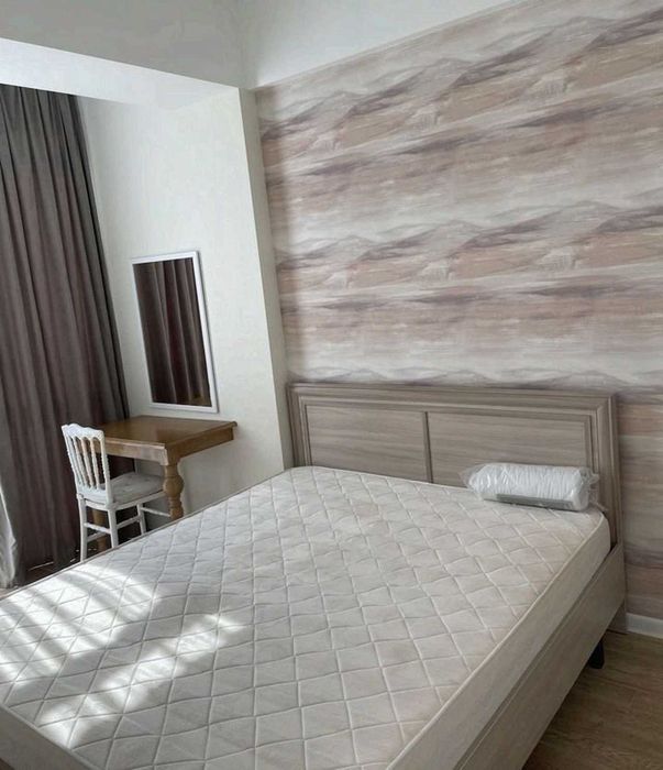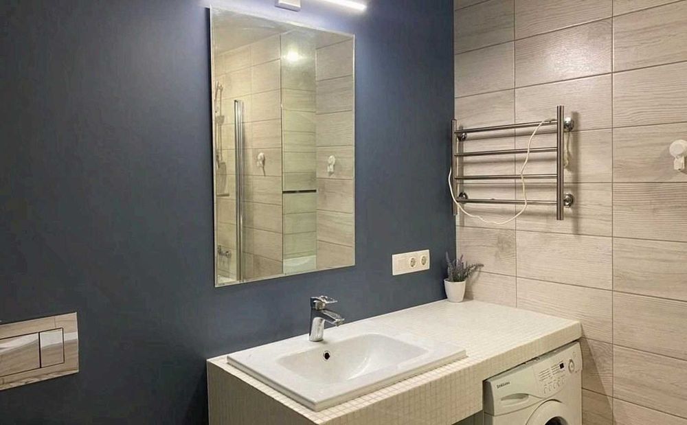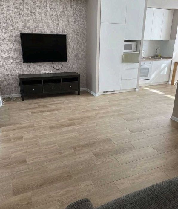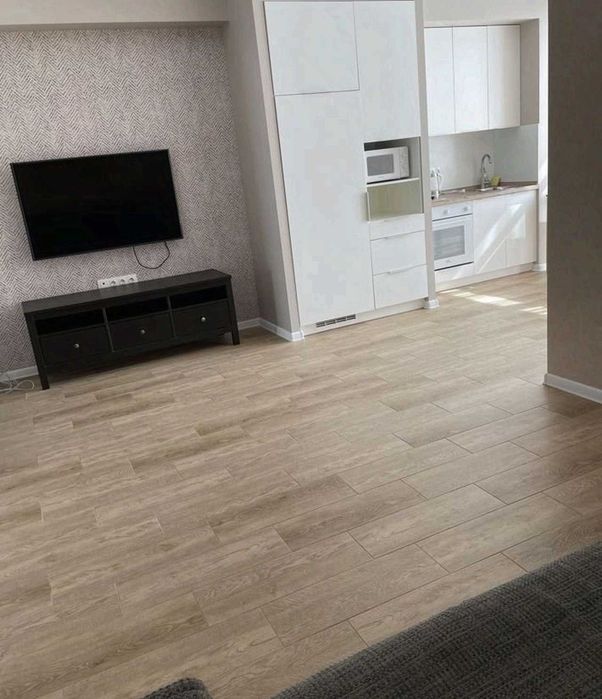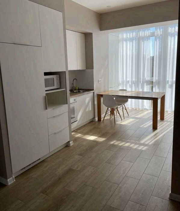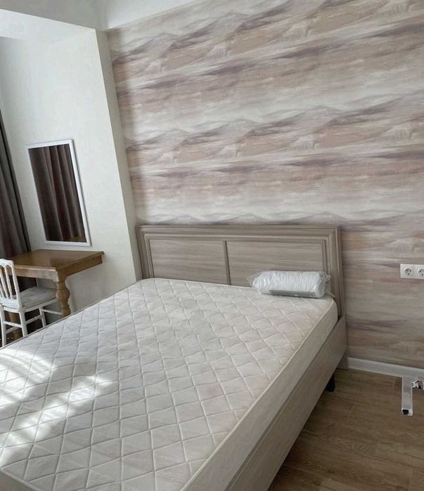 одна кімната — кухня-студія, друга — окрема спальня. Квартира укомплектована меблями та технікою: кондиціонер, телевізор, холодильник, пральна машина та інше.
