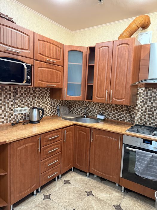 Квартира повністю облаштована меблями та технікою .