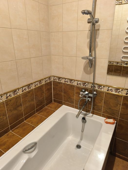 Квартира тепла, кімнати роздільні. У квартирі завжди є гаряча вода, стоїть газова колонка. На днях буде встановлена нова пральна машина.