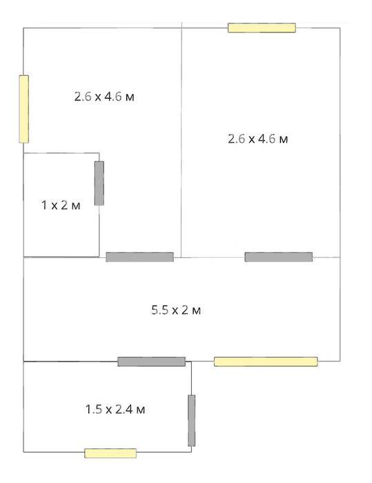 1 поверх: 2 кімнати, кухня, санвузол (душ)