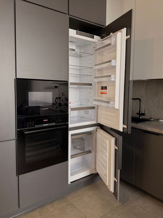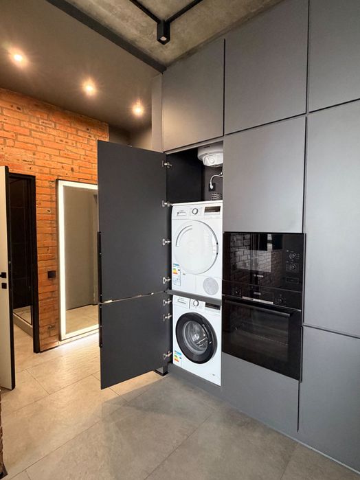 Квартира полностью укомплектована для жизни, есть вся техника, духовка, микроволновка, бойлер, кондиционер, стиральная, сушильная машина, посудомойка.
