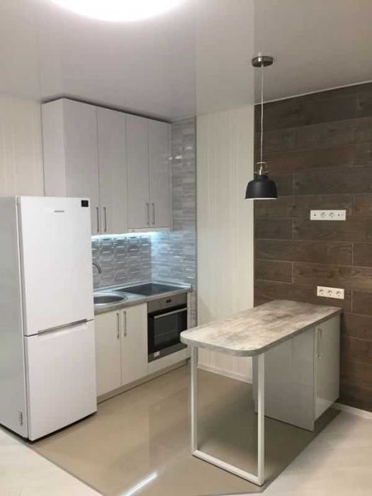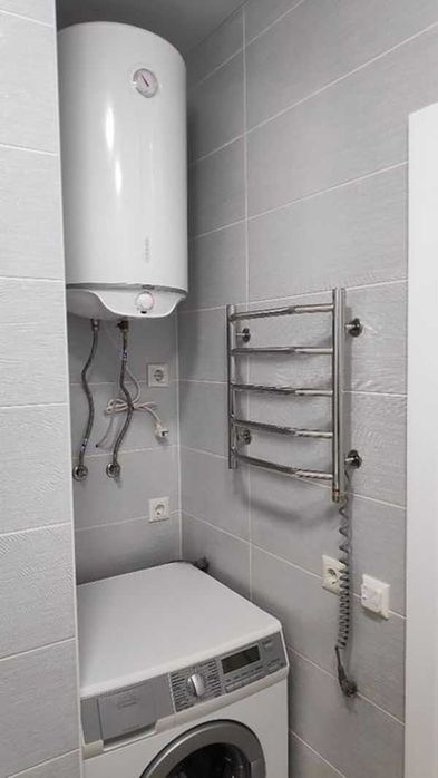 З техніки є все необхідне: кондиціонер (працює від 7 до +45), пральна машина-автомат на 7 кг, бойлер на 80 літрів, великий холодильник, витяжка, індукційна варильна панель та електрична духова шафа. Кухня вбудована, санвузол суміжний.
