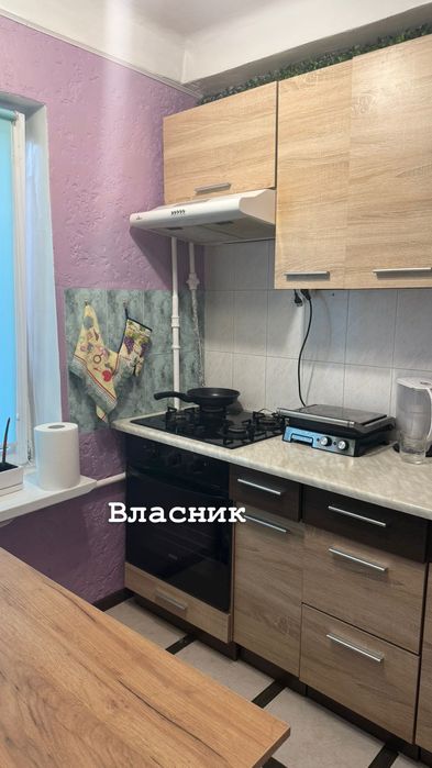 У квартирі встановлена газова плита. Є весь посуд і столові прибори.
