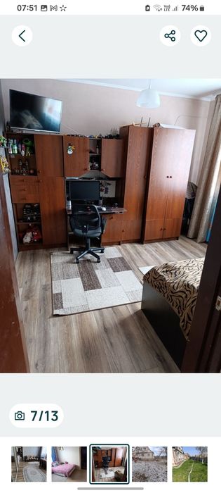 Будинок,веранда,4 кімнати(три спальні та зала),велика вана кімната.Вода в будинку(свердловина),опалення газовий колет-який не залежить від світла +пічне опалення на чотири кімнати.Є садок(молодий),та старий(плодоносять).