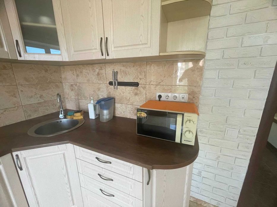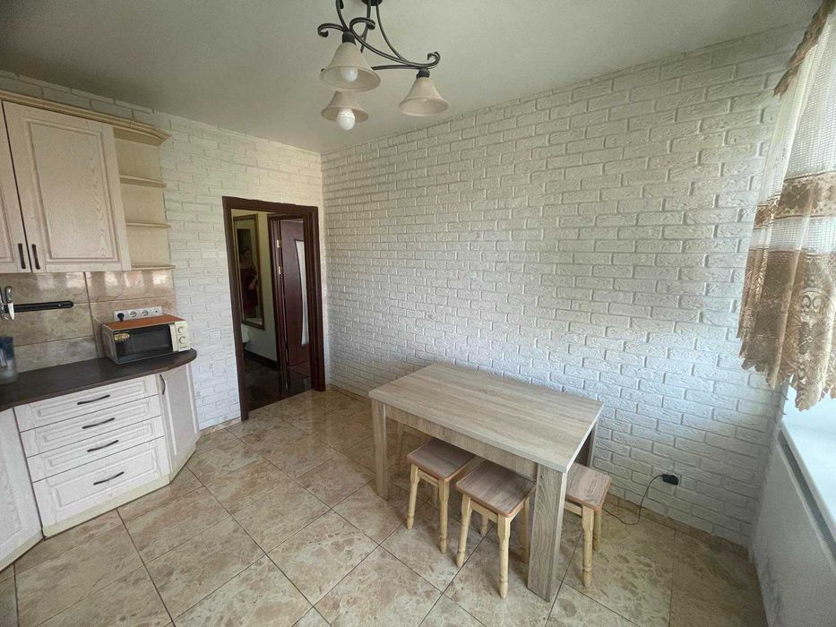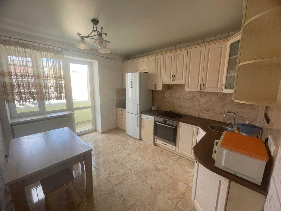 Загальна площа: 47 м²; поверх: 8 із 9; стан: після ремонту; меблі: диван, шафа, комод, стіл, кухонний гарнітур, шафа-купе для верхнього одягу; техніка: холодильник, пральна машина, плита, посудомийна машина, мікрохвильова піч, бойлер; опалення: дахова котельня;