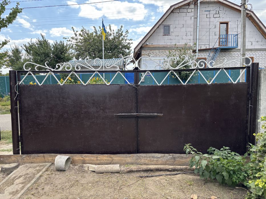 Асфальтована дорога. Паркан та ворота присутні.