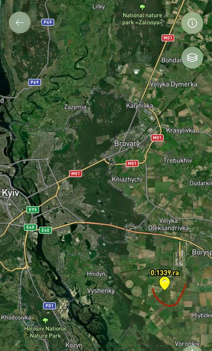 До міста Бориспіль та міжнародного аеропорту Бориспіль: 15-20 хв.