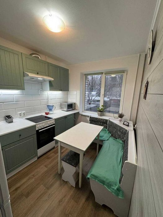 Є ліжко, диван і крісло — всі меблі нові, придбані рік тому, встановлений ортопедичний матрац.