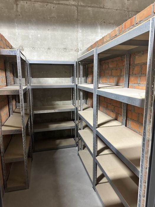 Власна комора зі стелажами для зручного зберігання речей.