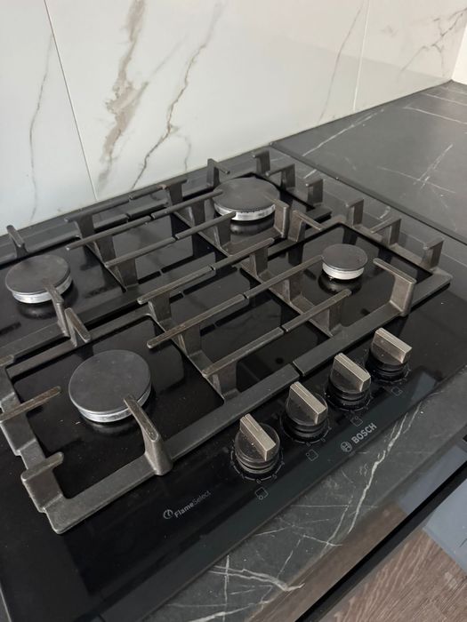 - Техніка – BOSCH (духова шафа та варочна поверхня), SAMSUNG, INDESIT;