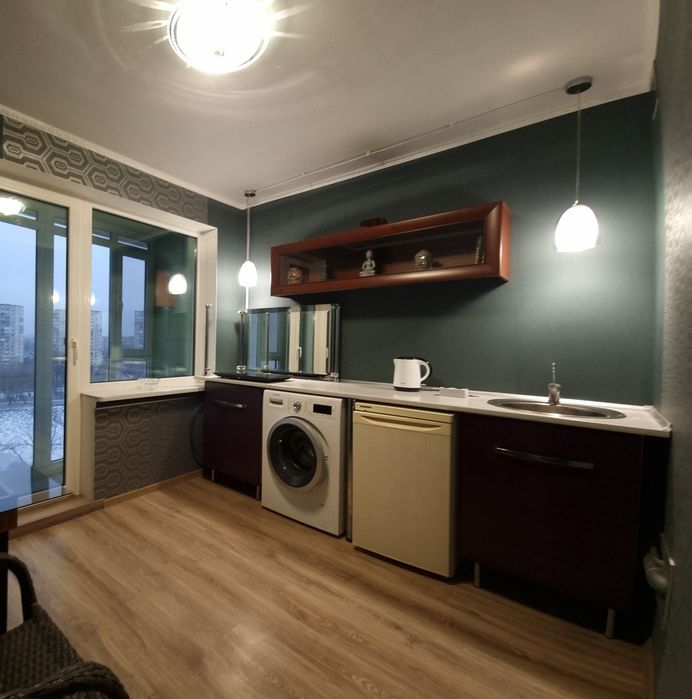 Бойлер Thermex. Стіралка Bosch, холодильник Liebherr, плита Sencor, чайник Tefal. Новий ортопедичний матрас Matrolux 160х200 на якому ще не спали. Шкаф - гардеробна. Вид з вікна на озеро, парк, і весь Київ. Парковка - під домом, поряд багаторівневий паркінг Gsky, супермаркет Сільпо, далі ТРЦ Квадрат, Novus, Skymall.