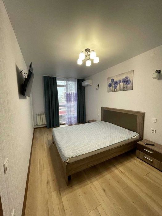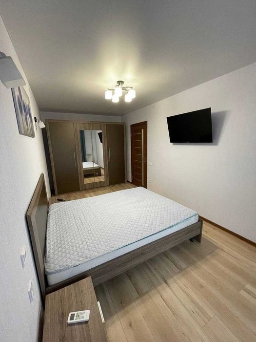 У квартирі є всі необхідні меблі: двоспальне ліжко, приліжкові тумбочки, велика шафа, розкладний диван.