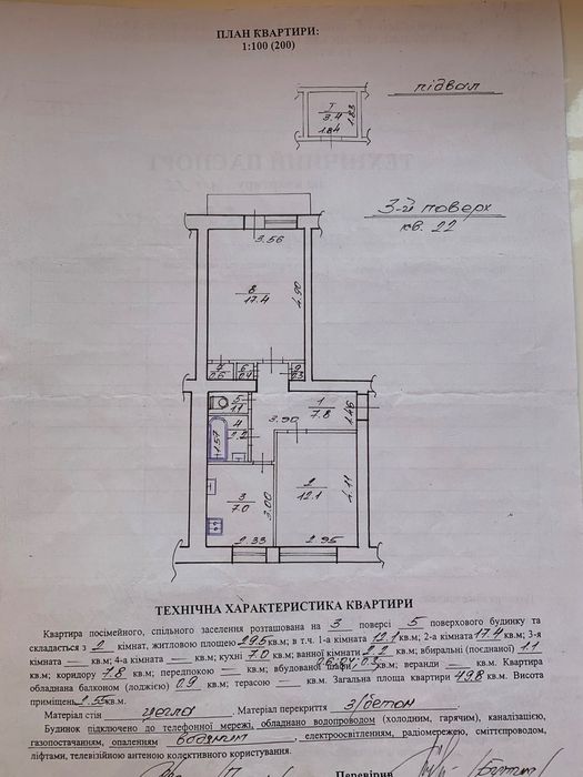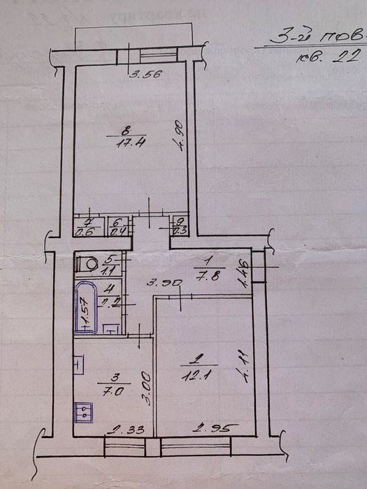 Кімнати: 12,1 м² та 17,4 м² (окремі)