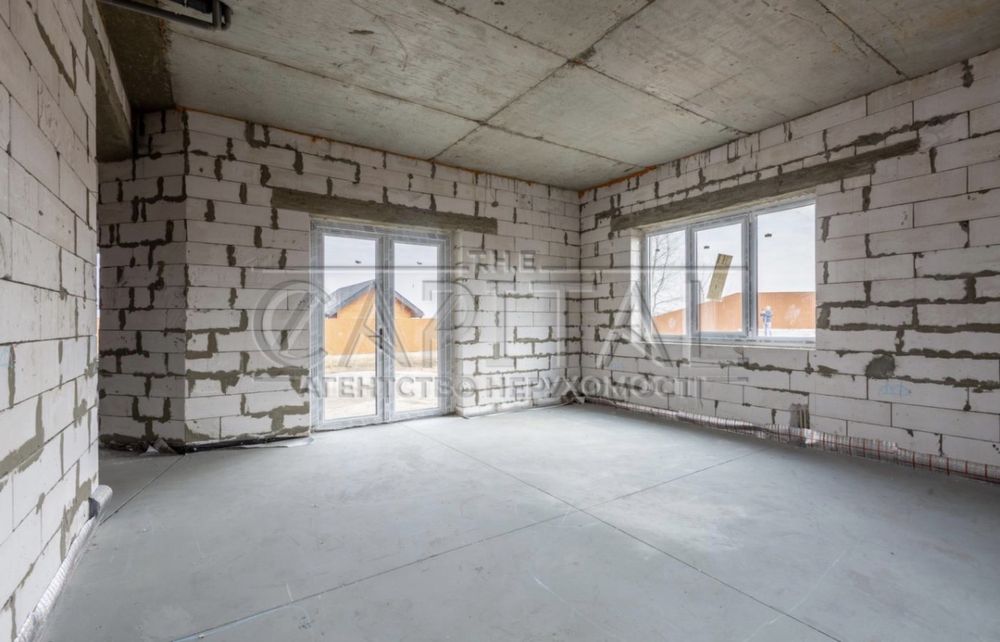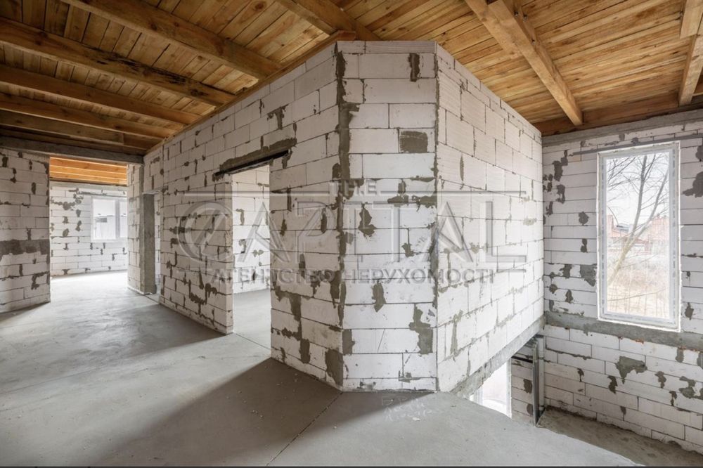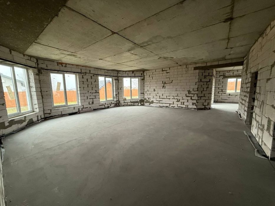 Побудований з газоблоку 300мм + утеплювач 100мм (поштукатурений) + утеплення фундаменту. Готовий до фарбування/декору.