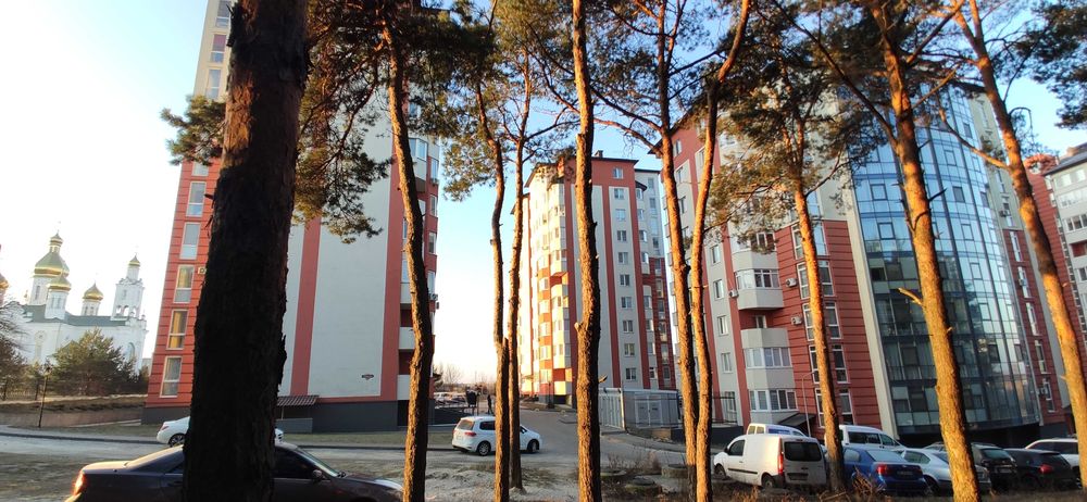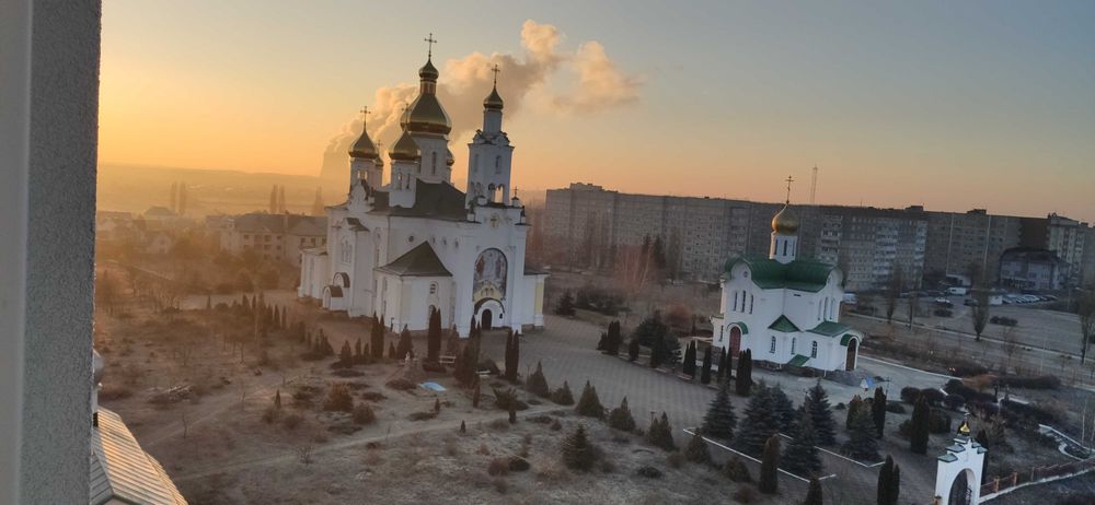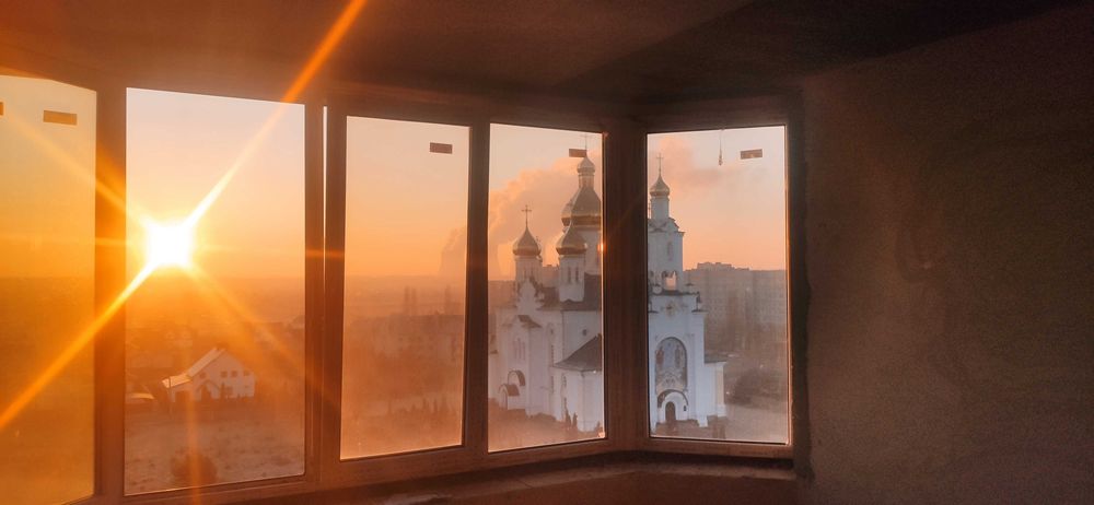 Вікна кухні та вітальні широкі на всю стіну з виглядом на собор (схід).