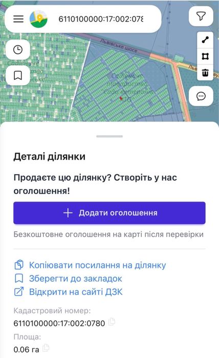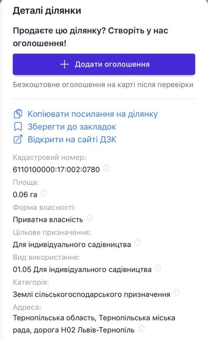 | Земельна ділянка: |
