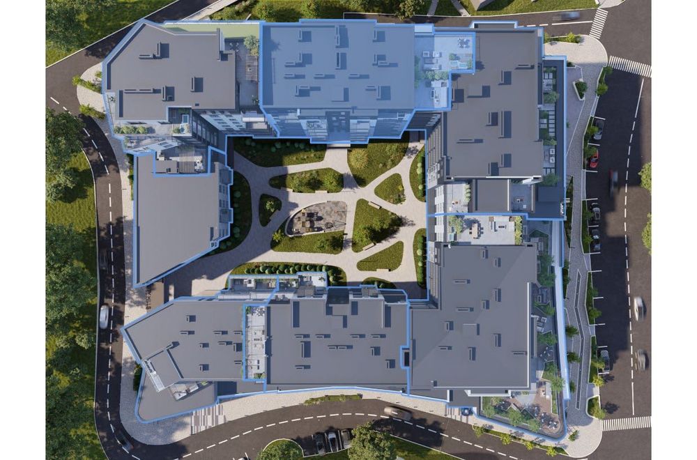 На території комплексу - закритий внутрішній двір, концепція без авто, озеленені зони, підземний паркінг, гостьовий паркінг, комерційна інфраструктура, відеоспостереження, ліфт та охорона території. Комплекс створений для приватності, комфорту та безпеки мешканців.