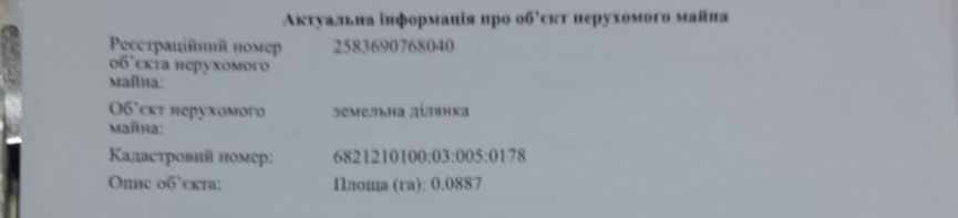 Кадастровий номер: 68*****100:03:005:0178.