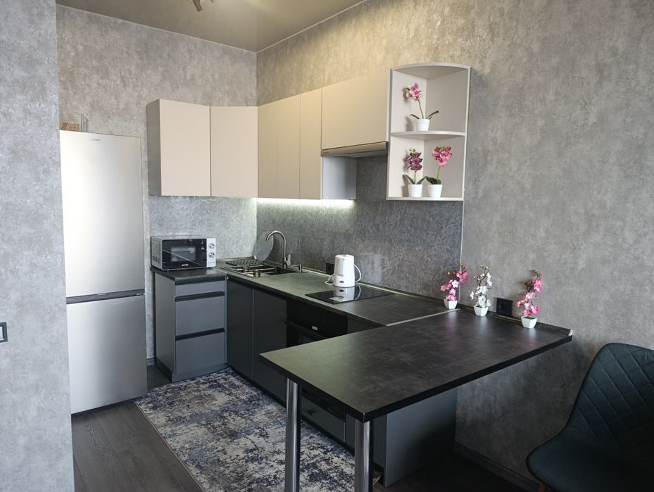 Київський; Продам свою квартиру в ЖК Баухаус; Продам свою квартиру в новом ЖК премиум класса Баухаус. 39,3 кв.м. Евродвушка: спальня и кухня-студия. Новый современный ремонт, с мебелью и техникой. Никто не жил, квартира новая. Охраняемая территория, есть подземный паркинг. Электричество не отключают. Есть своя газовая котельная на комплексе.