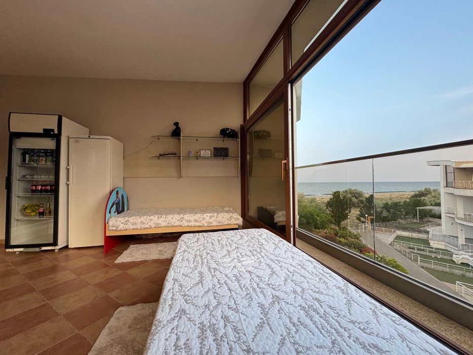 Перша лінія: 75 метрів до урізу води, відокремлений чистий піщаний пляж.
