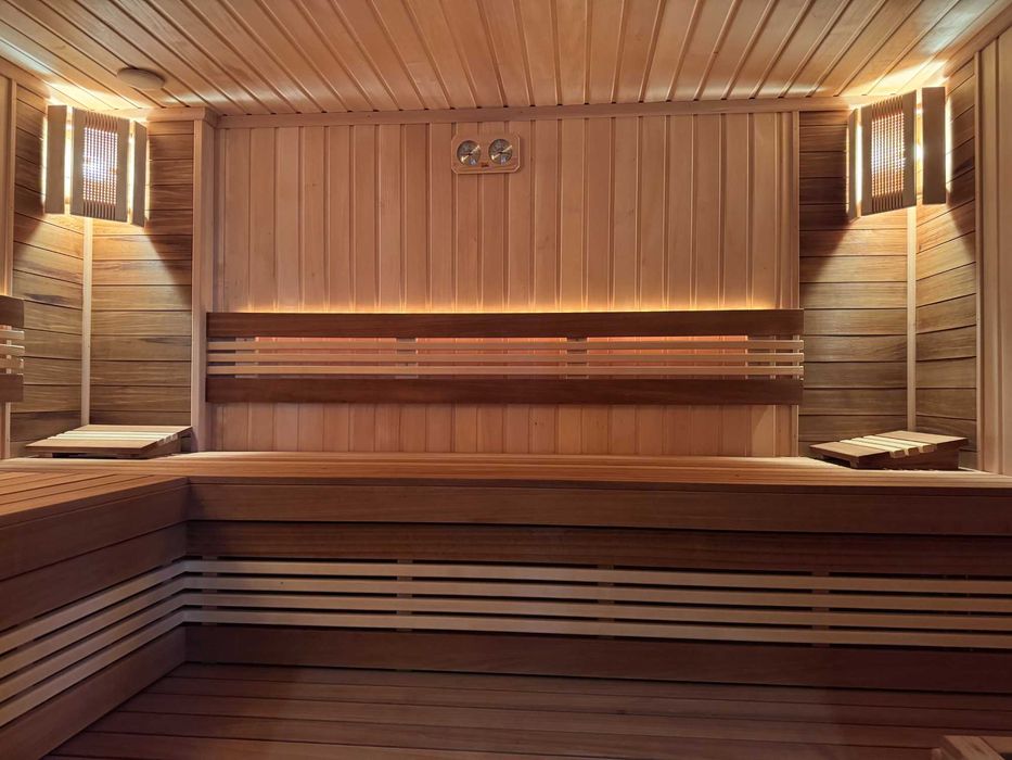 Сауна: Оздоблена тонованою липою та терморадіатом, потужна електрокам'янка з парогенератором.