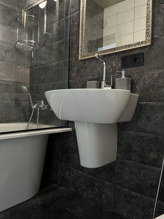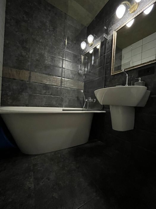 Ремонт делался для себя только из качественных материалов, керамогранит Испания на полу в комнате ( половина площади) и ванна /санузел.