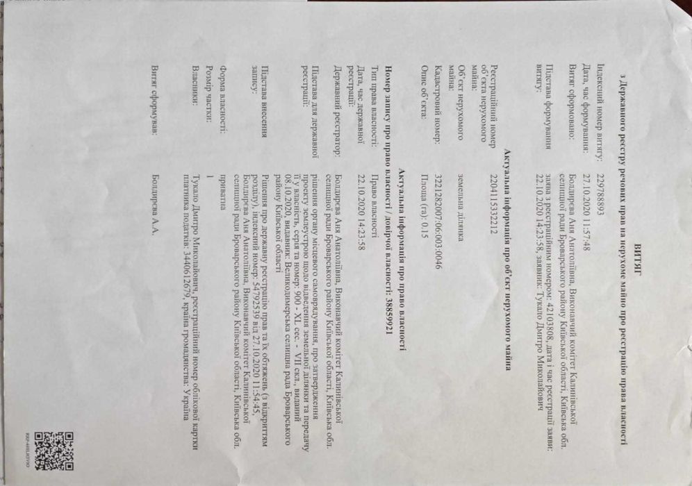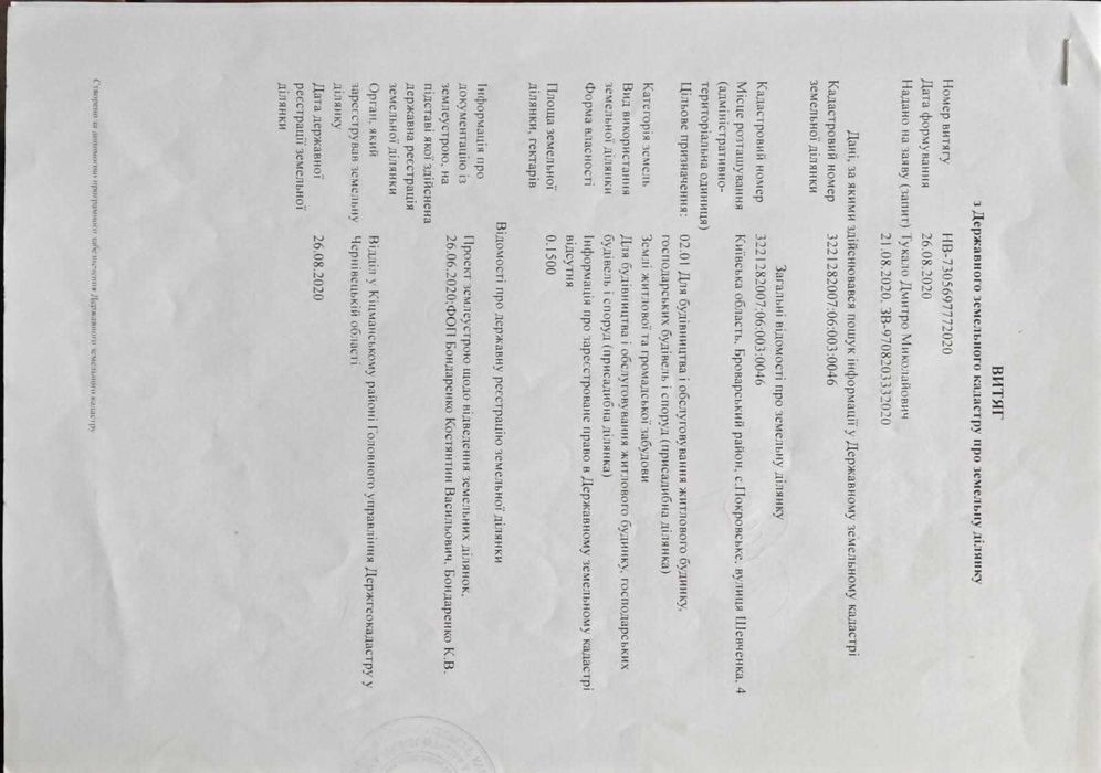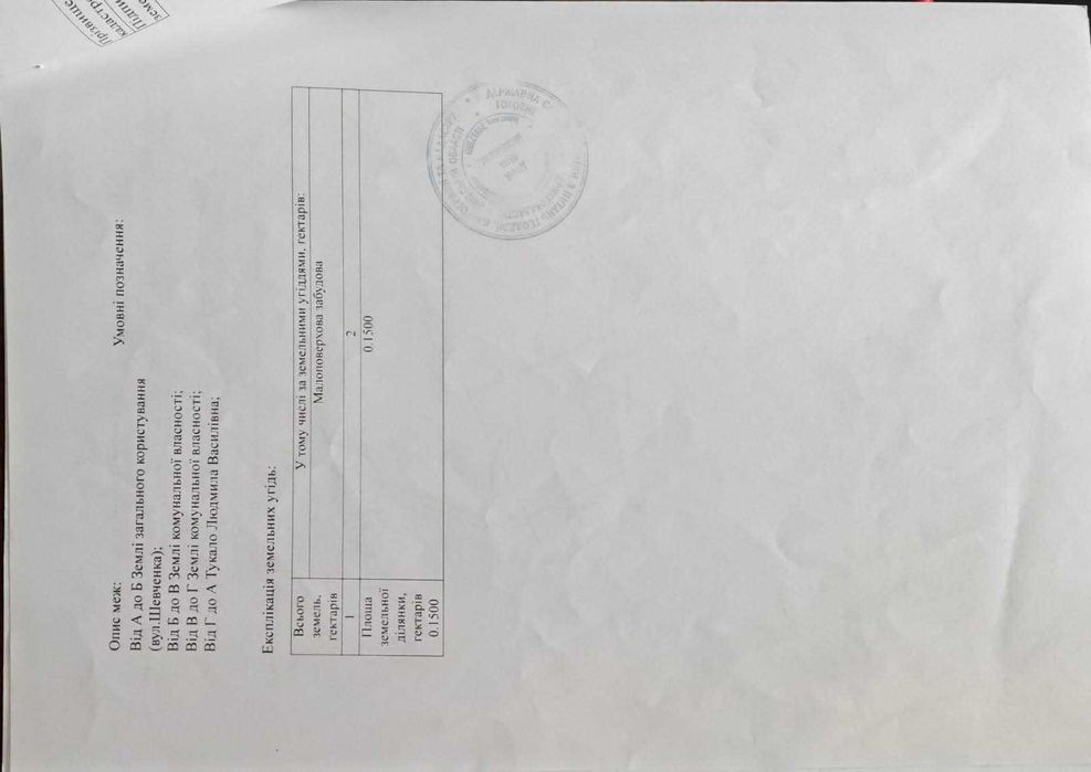 | Земельна ділянка: |