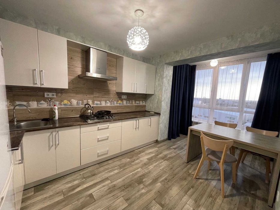 Здається в довгострокову оренду велика 1-кімнатна квартира в ЖК "Євромісто" 45 м.кв.; Квартира з окремою спальнею, великою кухнею з обідньою зоною та зоною відпочинку з великим диваном і телевізором, (євродвушка)