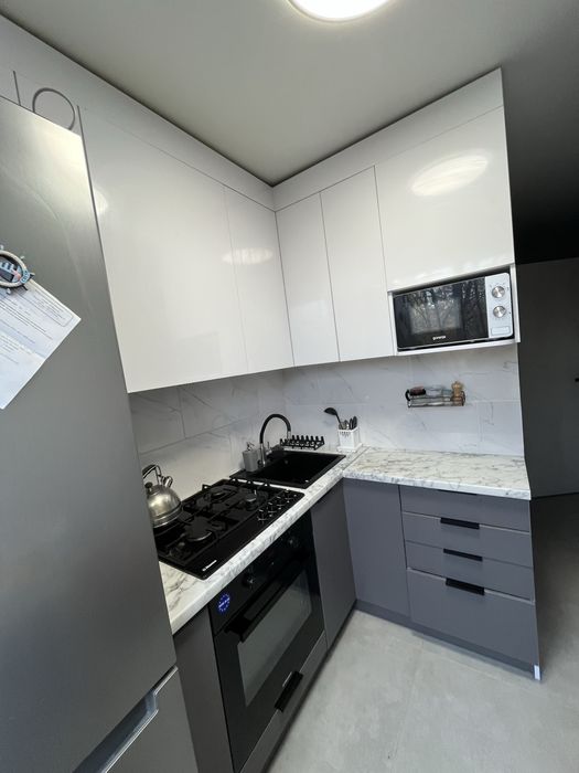 В квартирі лишається вбудована кухня (встановлена в кінці 23-го року),(фасади дуже хорошої якості) + холодильник та будована духова шафа і варильна поверхня (газова, що в наших реаліях є пріоритетно), витяжка. Гранітна мийка.