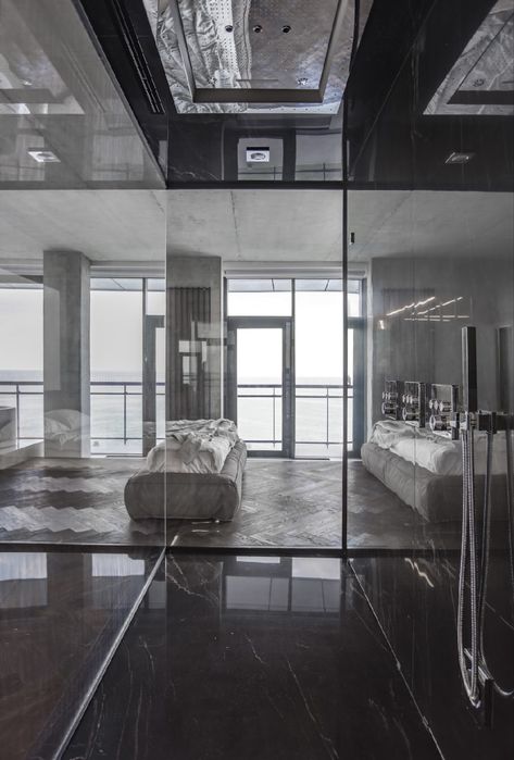 Тераса є повноцінним продовженням житлового простору. Тут передбачено зону BBQ з грилем, джакузі, а також індивідуально розроблені лежаки, які за потреби підіймаються з підлоги або повністю інтегруються в її рівень. Скляні панелі на терасі мають розсувну систему та можуть відкриватися або закриватися залежно від погодних умов, забезпечуючи комфорт у будь-яку пору.