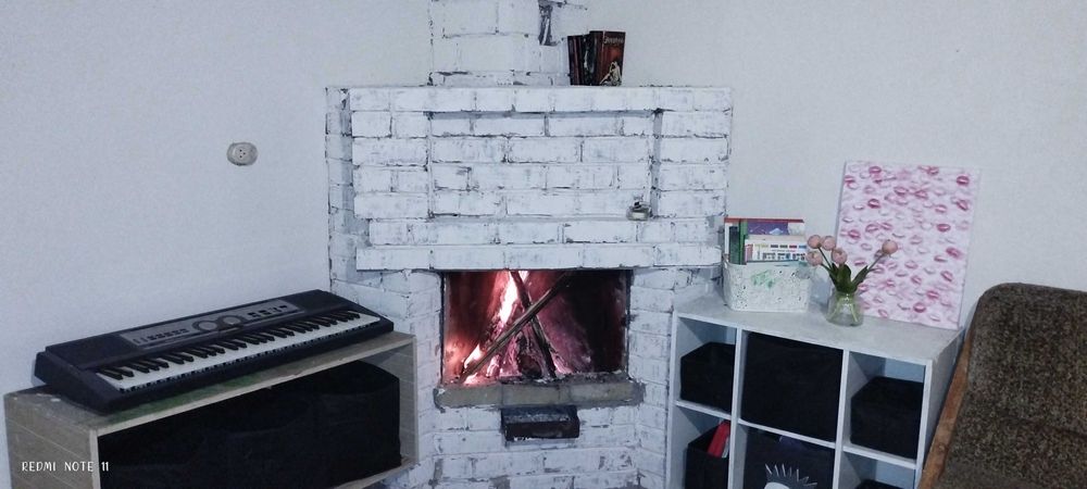 На першому поверсі - веранда, кухня, ванна та зала, пластикові вікна, є камін.