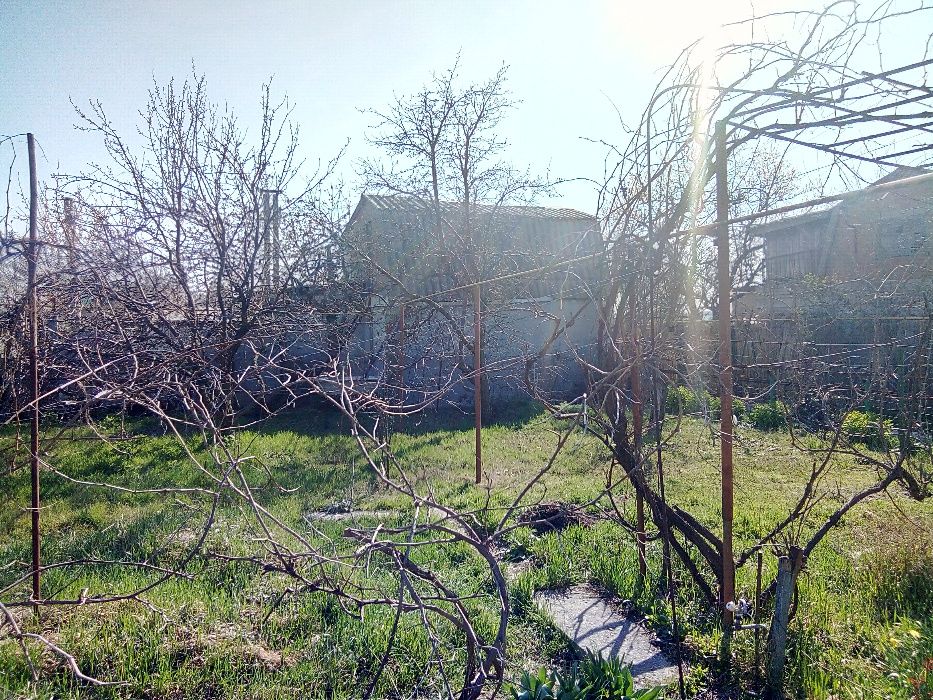 На участке туалет, душ и курятник. Много винограда и плодоносящие деревья. От маршрутки пешком 10-15 минут.