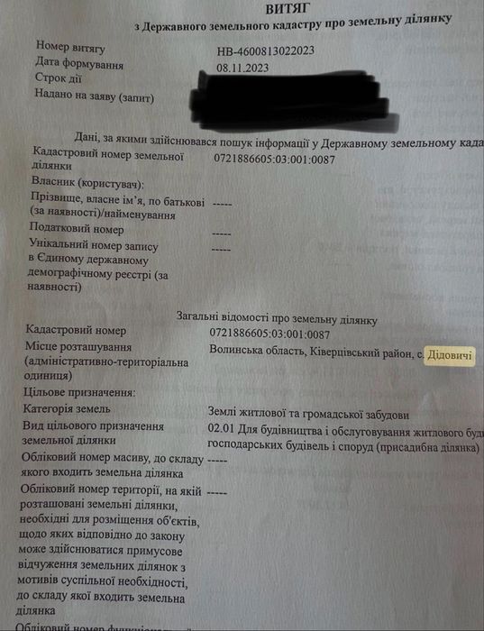 продам землю Волинська область Ківерцівський район село Дідовичі
