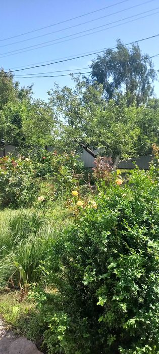 Фруктовий сад (черешня, яблуні, груша, абрикоси, персики, малина ремонтантна), плакучі карликові верби, горіх, місце під альтанку-барбекю та фонтан, бочка для поливу, велике зелене подвір'я, квіти.