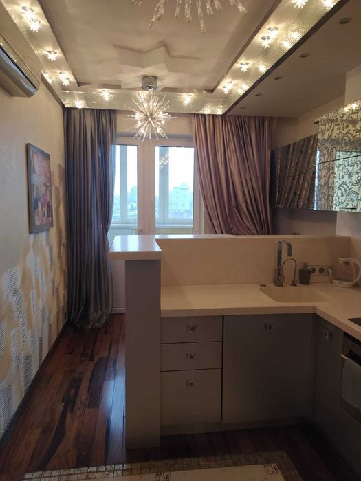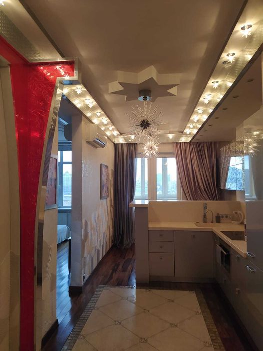 Шевченківський; 1-к квартира, довгострокова оренда (М.Лук'янівська); Квартира-студія 50 кв.м. вул.Білоруська, комфортно для 1-2 людей, без комісії, середній поверх, монолітно-каркасний будинок, підземний паркінг, метро 5 хв пішки. Дизайнерський ремонт, ортопедичне двомісне ліжко, диван, підлога - натуральне дерево (полісандр), підігрів підлоги, кондиціонери на холод/тепло, пралка, тв, плита, духовка, мікрохвильовка, холодильник, ванна, душова кабіна.