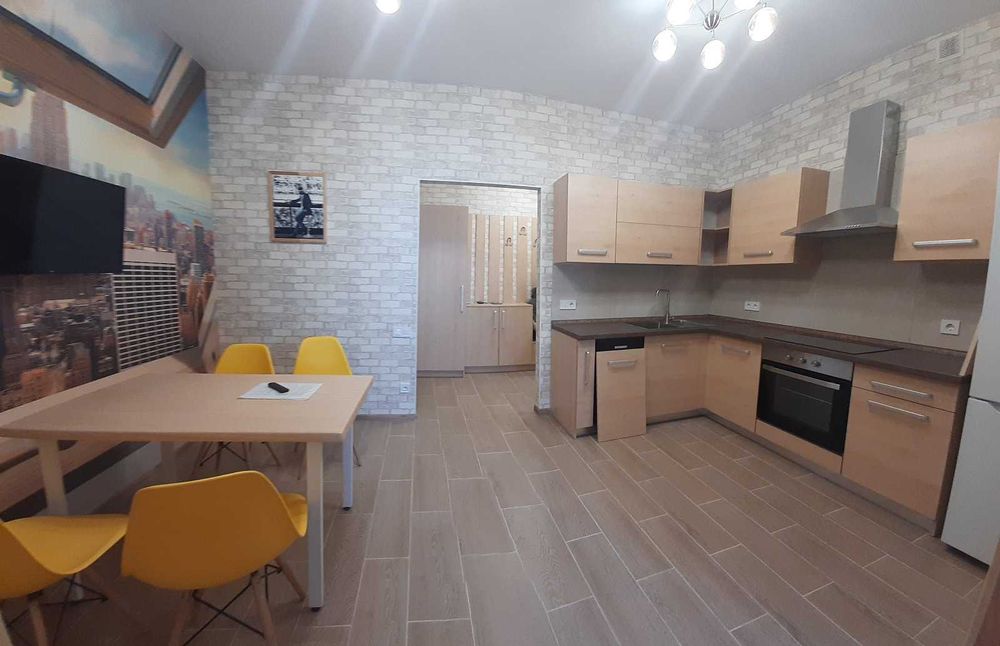 Укомплектована полностью для комфортного проживания :WiFi, Smart TV, холодильник , кондиционер зима лето, индукционная плита , духовка , стиральная машина , м\к печь, ванна.