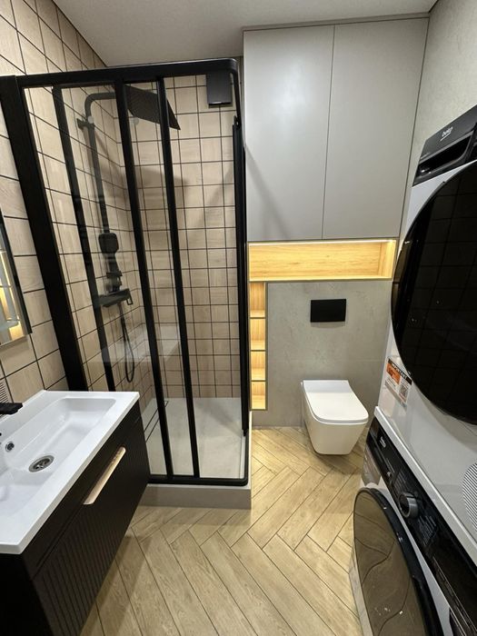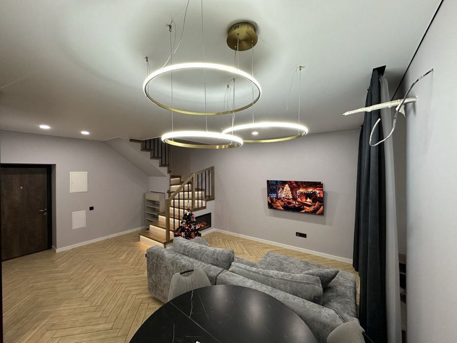 80.3м2. Двоповерхова квартира з індивідуальним опаленням. Двома сан вузлами. Гардеробна кімната , дві окремі спальні та велика кухня вітальня. Тепла підлога , камін. Кондиціонери у кожній кімнаті. Вся необхідна техніка та меблі, залишаються. Дорога сантехніка та кераміка. Все зроблена з любовʼю та зі смаком.