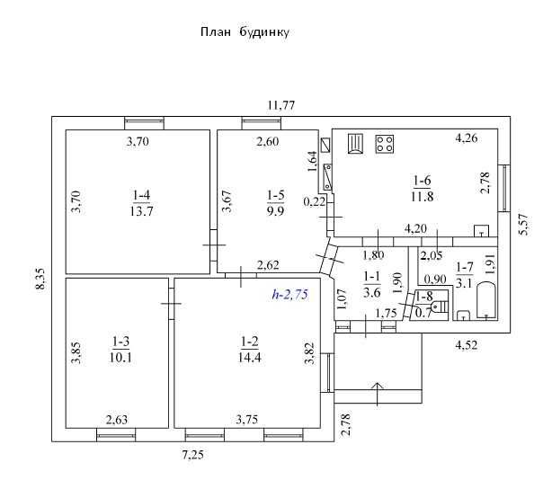 Будинок одноповерховий, загальна площа 67.3 кв.м., побудований в 1984 р., розміщений на приватизованій земельній ділянці 7 соток.
