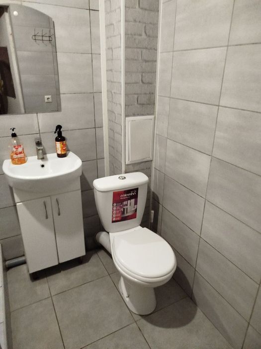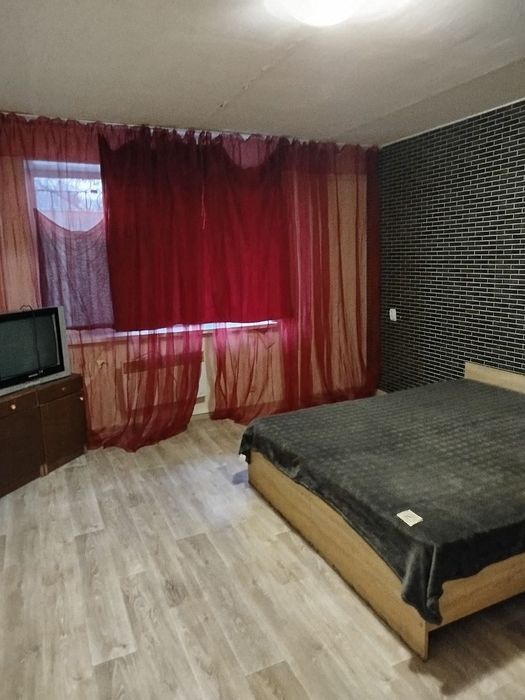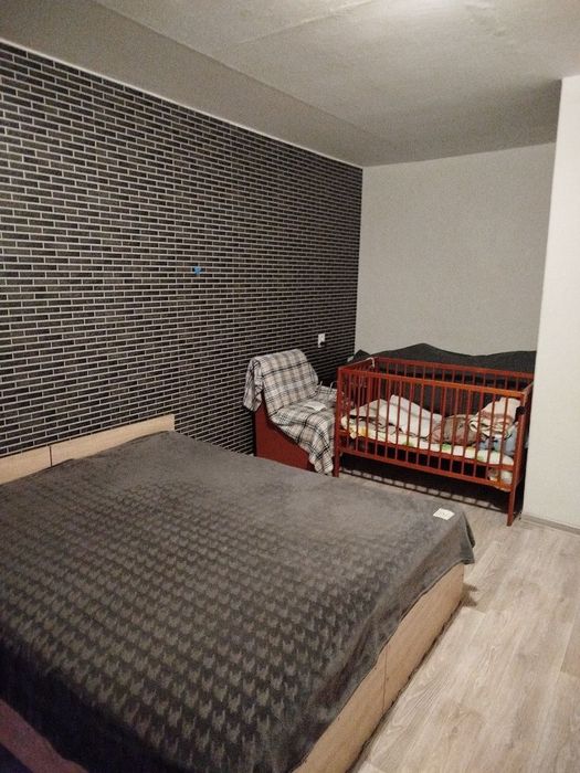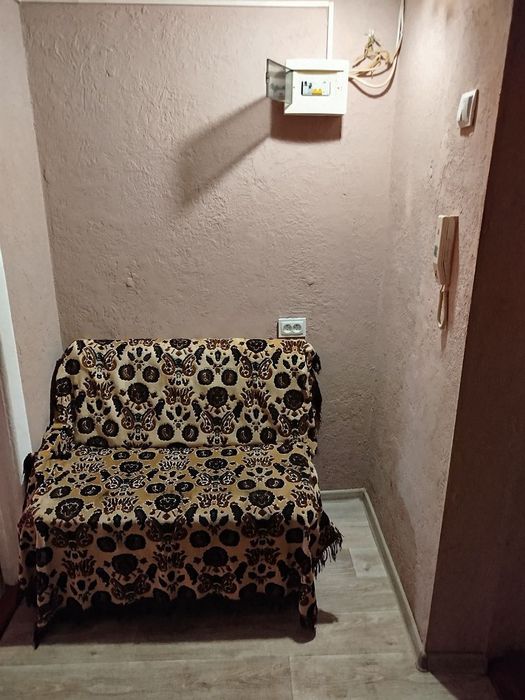 Підлога ліноліум. Стіни - декоративна штукатурка та шпалери. Ліжко, диван, усе, що є на фото залишається новому власнику.