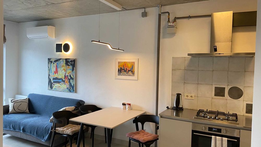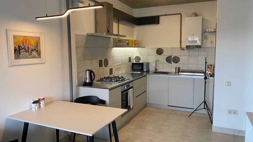 Сучасний ремонт в стилі Loft, індивідуальне опалення, вбудована техніка, посудомийна машина, пралька, мікрохвильова піч, телевізор, оптоволоконний інтернет, кондиціонер, відеодомофон поруч торговий центр, каварні, зупинки транспорту. Є можливість для паркування платного та безплатного.
