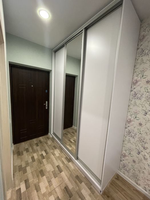 З меблів: велика шафа-купе на три відділення, вбудована кухня, стіл, стільці, двоспальний новий диван.