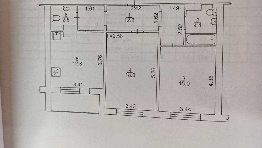 Площа 66 м², дві окремі кімнати 18 та 15 м², кухня 11 м², 2 санвузли (другий використовували як місце для зберігання). 2 поверх, незасклена лоджія.