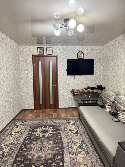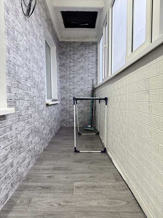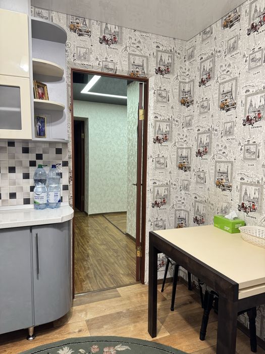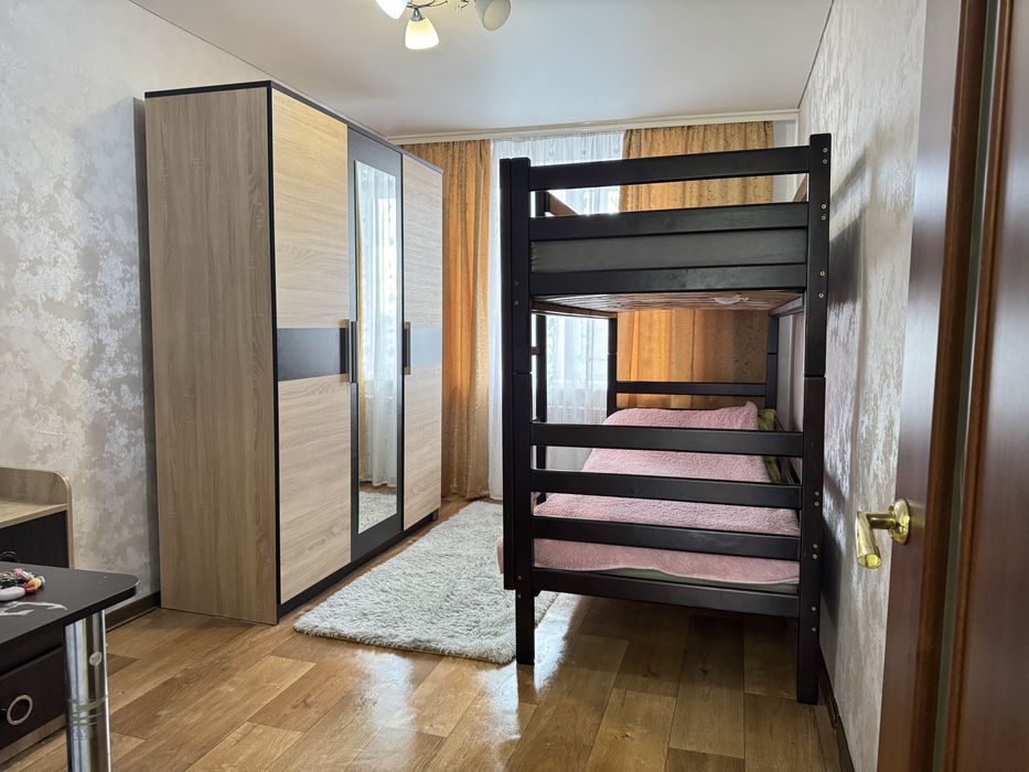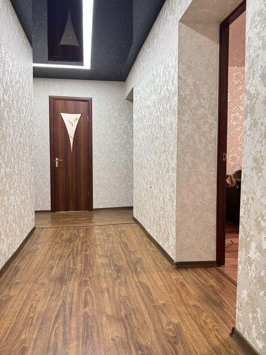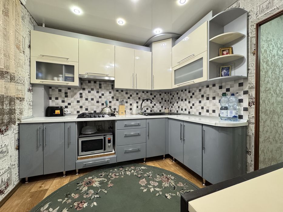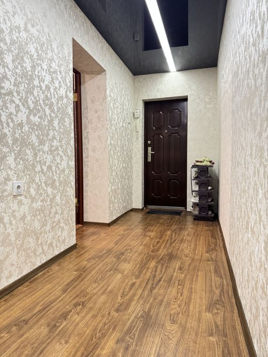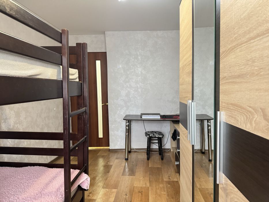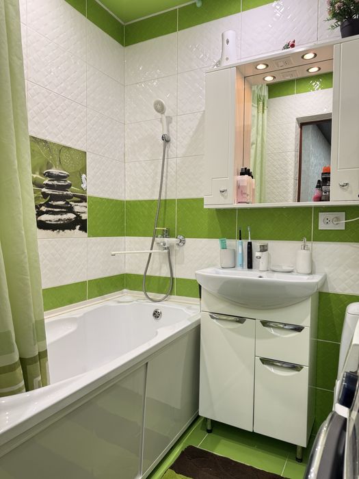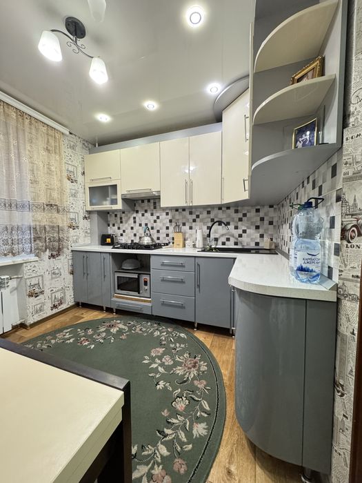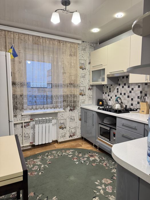 Виконаний свіжий ремонт: у кімнатах натяжні стелі, підлога — лінолеум, стіни оздоблені шпалерами. У ванній кімнаті — плитка на підлозі та стінах, натяжна стеля. Сантехніка та електрика повністю замінені, центральний стояк оновлений.