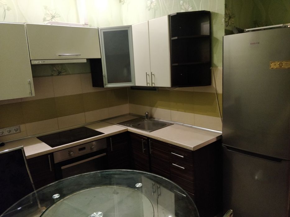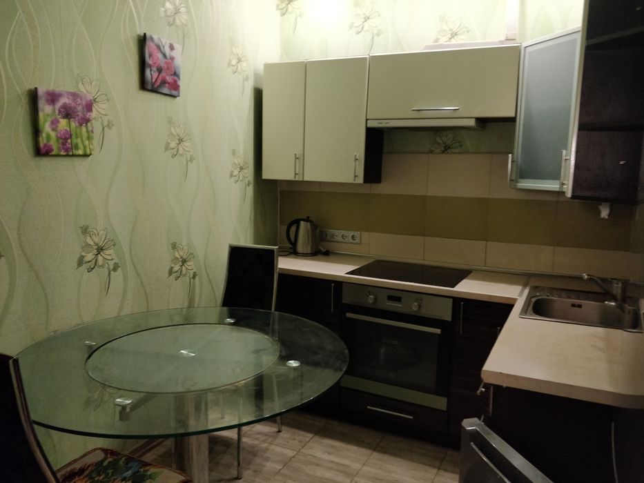 Кондиціонер, телевізор, холодильник, пральна машина, духова шафа, електрочайник, бойлер, диван, шкафи та комод. Поруч магазини Фора та АТБ.